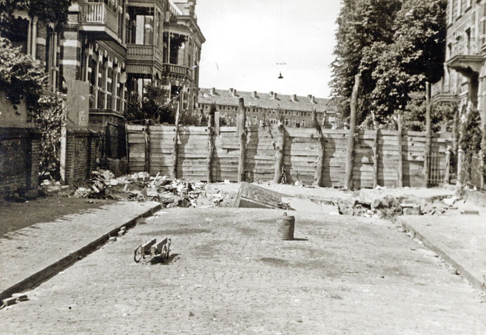 foto ± 1945 met een door de Duitsers aangelegde schutting.