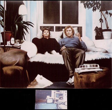 Zes schilderijen van huiskamers waar de bewoners televisie kijken. Onder (of naast) het schilderij hangt een foto van het televisietoestel, waarnaar ze kijken. Olieverf op linnen (100 x 80 cm), formaat foto (24 x 18 cm).
