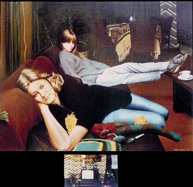 Zes schilderijen van huiskamers waar de bewoners televisie kijken. Onder (of naast) het schilderij hangt een foto van het televisietoestel, waarnaar ze kijken. Olieverf op linnen (100 x 80 cm), formaat foto (24 x 18 cm).