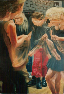 paintings of visitors of dancing 'The Move', Varkensstraat in Arnhem (dancing on new wave music). Oil painting on canvas (120 x 80 cm).