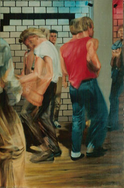 paintings of visitors of dancing 'The Move', Varkensstraat in Arnhem (dancing on new wave music). Oil painting on canvas (120 x 80 cm).