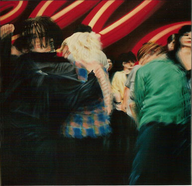 paintings of visitors of dancing 'The Move', Varkensstraat in Arnhem (dancing on new wave music). Oil painting on canvas (120 x 120 cm).