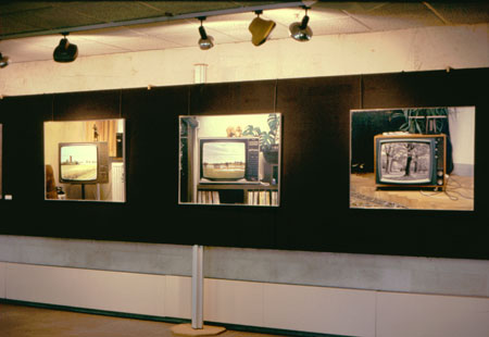Main building of the Dutch TV corporation, NOS in Hilversum (1985). Solo exhibition in the hall. The exhibition consists of the two series 'Dutch interior' and 'Dutch landscape' (2 x 6 paintings). Following these exposition the paintings are shown in the TV program 'Vloedlijn' of RVU on April 25 1986 on Dutch television.)