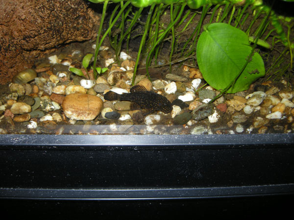 Ze houden het aquarium keurig algvrij. Tweemaal in de week voer ik ze bij.