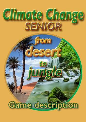 “Climate Change SENIOR, from desert to jungle” is a more difficult strategic board game than Climate Change JUNIOR. The game is intended for two players, but can also be played with three or four players if desired.
