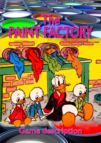 ‘The Paint Factory’ is a tactical board game for 2-6 players. Which player will become the champion of the paint mixers? Ages 8 and up. The playing time is determined in advance and (optionally) set on an (egg) timer (± 30 min.). The centenary of the paint factory is celebrated with a special competition: the championship of the paint mixers. Which paint mixer can mix the most cans of paint within the agreed time?