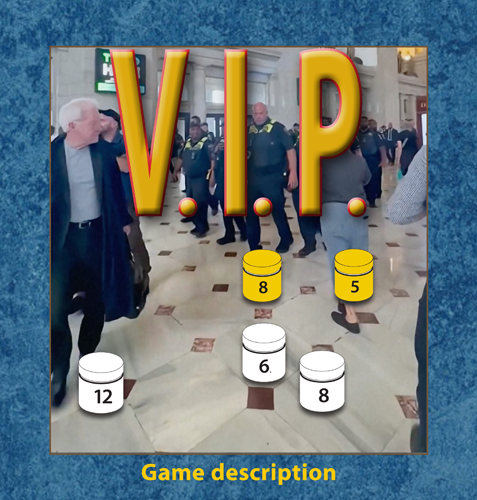 V.I.P. is a strategic board game for 2 players, age 8 and up. Playing time about 30 minutes.