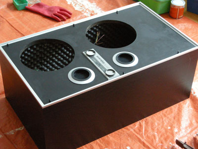 Voorzie alle wanden van de oude luidsprekerbox van geluidsdempend materiaal.