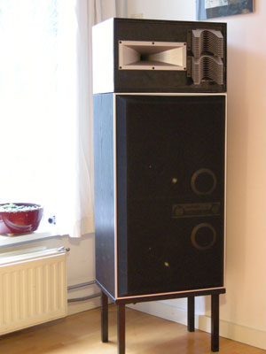 De oude box is gemaakt van gefineerd spaanplaat en afgewerkt met een aluminium strip. Omdat het nooit lukt om dezelfde materialen te vinden, heb ik gekozen voor 'de tegenstelling'. De nieuwe box heb ik aluminium kleurig geverfd en de strip is zwart gelakt. Voor het luidsprekerdoek heb ik zilvergrijs gekozen.