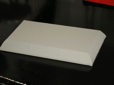 Het luidsprekerdoek niet al te strak vanuit het midden opspannen en aan de binnenkant nieten met een nietpistool. De ruimte in de stof die op de hoeken ontstaat met naald en draad wegwerken.