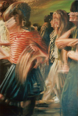 paintings of visitors of dancing 'The Move', Varkensstraat in Arnhem (dancing on new wave music). Oil painting on canvas (120 x 80 cm).